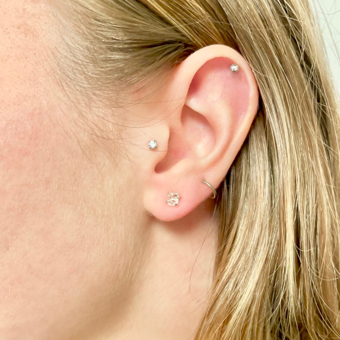 Organic, raw 4-6 mm rose quartz set in a high quality 20 gauge stud earring post with rubber backs. Handmade and one of a kind! Safe for sensitive skin.